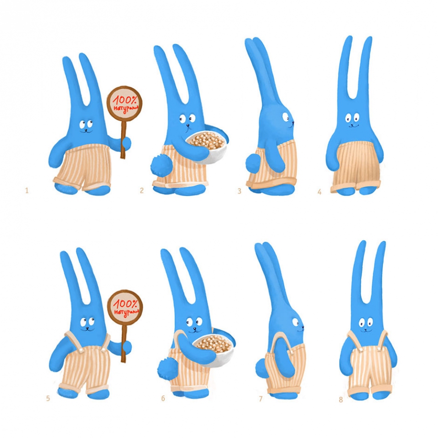 И ещё был «Заяц в штанишках», который скосил глаза в предвкушении большого-большого завтрака из большой-большой миски. Заяц мгновенно захватил первенство своей милотой, простотой образа, возможностью развития в анимации.
