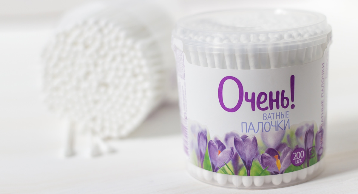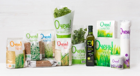 Креаторы считают, что название «Очень!» идеально отражает концепцию, формируя целый пласт смысловых ассоциаций. Первый ассоциативный ряд – оценочное восклицание, означающее превосходную степень: все лучшее, достойное внимания. Однако благодаря языковой игре обычные ватные палочки превращаются в «ОЧЕНЬ ватные», зеленый горошек становится «ОЧЕНЬ зеленым», рис «ОЧЕНЬ шлифованным», масло – «ОЧЕНЬ оливковым», а салфетки - «ОЧЕНЬ бумажными».