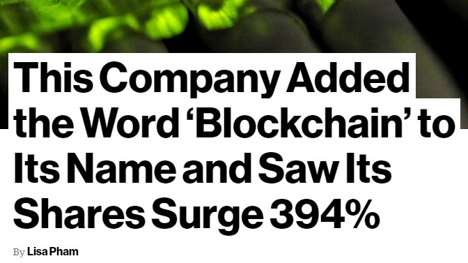 Компания добавила слово «блокчейн» к названию — и ее акции поднялись на 394%