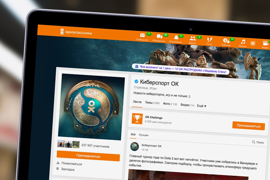 ОК транслирует The International Dota 2 третий год подряд. Соревнования традиционно собирают огромную аудиторию. Так, в 2017 году трансляции главного киберспортивного турнира мира собрали более 7 млн просмотров, в 2016-м — 6,6 млн просмотров.