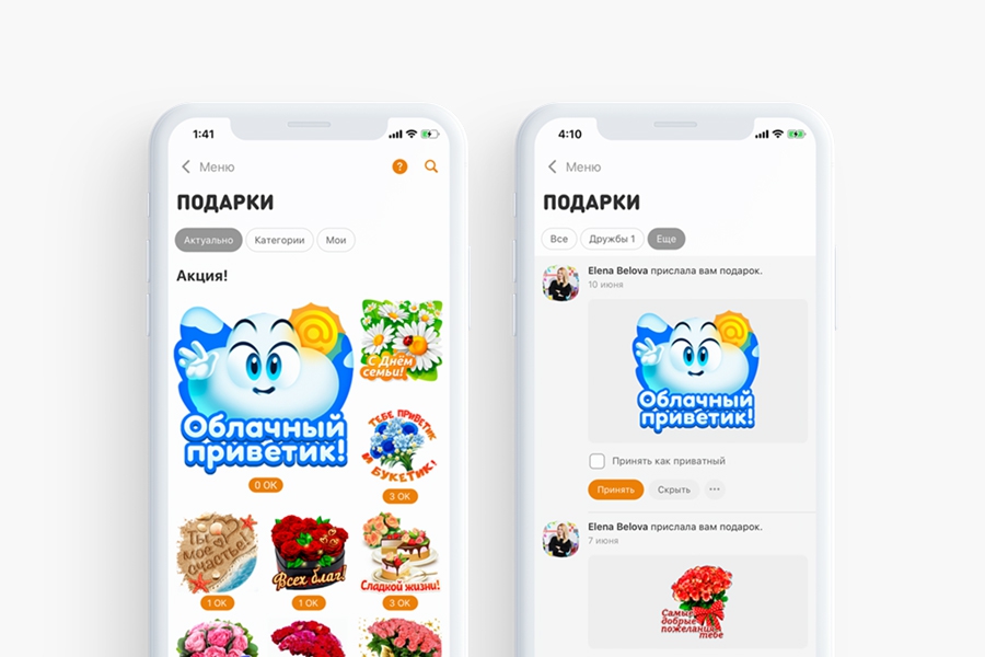 На витрине подарков в социальной сети «Одноклассники» появились места для хранения личных данных, сообщается в официальном блоге соцсети. Пользователи ОК теперь могут отправить друг другу не только эмоции и поздравления, но и 64 Гб в сервисе от Облака Mail.ru.