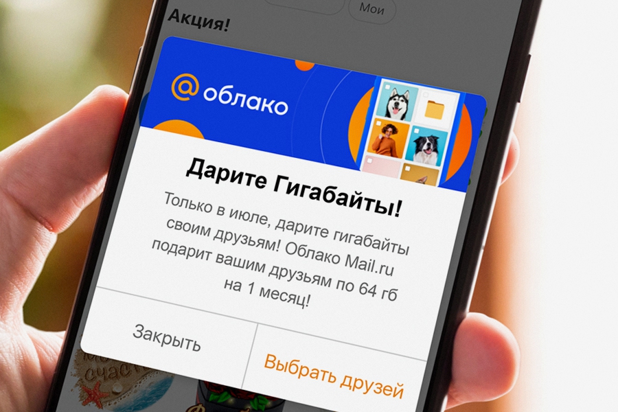 Специальное предложение «Облачный приветик» можно выбрать в разделе подарков и отправить другу. Он получит место в хранилище для бесплатного использования в течение месяца. Воспользоваться подарком можно как в мобильном приложении на iOS и Android, так и в веб-версии.