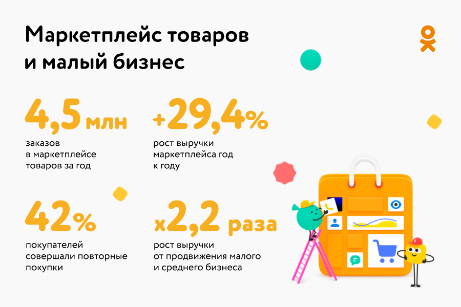 Продолжили расти также направления, которые год назад мы заявляли как новые для соцсети. Мобильные игры по аудитории обогнали десктопные, вновь кратно увеличив оборот внутриигровых покупок. Маркетплейс товаров вышел на 4,5 миллиона заказов в год, и мы ожидаем рост направления социальной коммерции в ОК в рамках совместного предприятия AliExpress Russia. Платформа для малого и среднего бизнеса получила несколько важных обновлений, благодаря которым доходы от рекламы в этом сегменте выросли двукратно, а бизнес получил все возможности для эмоциональной коммуникации со своими клиентами, привычной пользователям ОК.