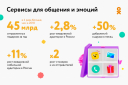 В прошедшем году основной фокус социальной сети был направлен на развитие сервисов для выражения ярких искренних эмоций и различных способов коммуникации с друзьями и близкими. За прошедший год пользователи отправили 45 миллиардов подарков — в четыре раза больше, чем год назад. Высокая активность пользователей в коммуникации друг с другом сказалась и на росте общей ежедневной аудитории ОК в России — в декабре 2019 год к году она выросла на 2,8%. В том числе на 11% выросла и ежедневная мобильная аудитория.