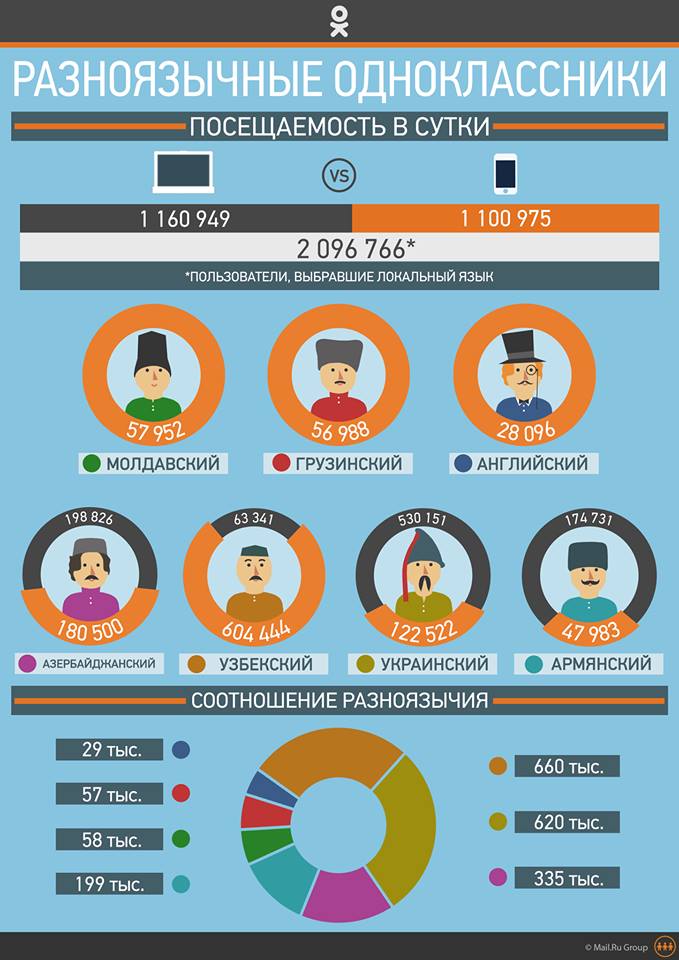 В прошлом году «Одноклассники» начали адаптироваться к пользователям из стран ближнего зарубежья. Соцсеть уже имеет версии на 9 языках: украинском, армянском, грузинском, молдавском, узбекском, кыргызском, азербайджанском, казахском, таджикском.