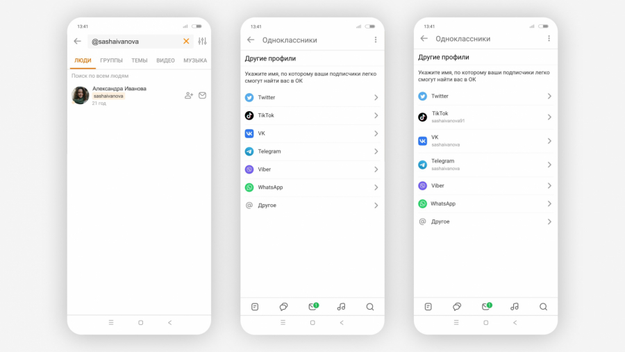 «Одноклассники» запустили возможность указывать в аккаунте название своего профиля из других соцсетей и мессенджеров. По никнеймам можно будет находить авторов и друзей, с которыми пользователь привык общаться на других платформах. Об этом Sostav сообщили в пресс-службе соцсети.