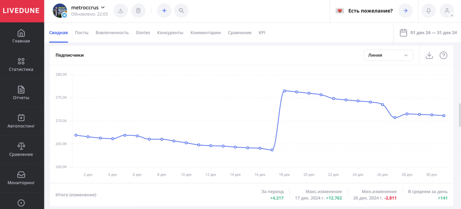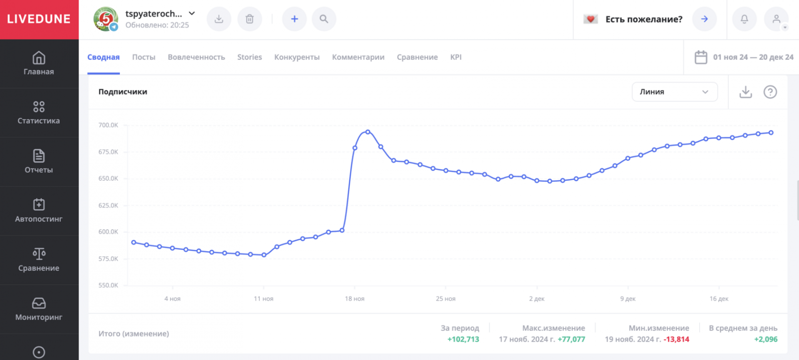 В общем, метрики получилось прокачать. Главный вопрос — принесло ли это в итоге пользу в виде новых подписчиков или продаж. Тут наверняка не скажешь, но динамика роста за период неплохая (прибавилось более 50 тысяч подписчиков) — так что, возможно, такие методы буста постов в ленте и работают. Проверить точно стоит.