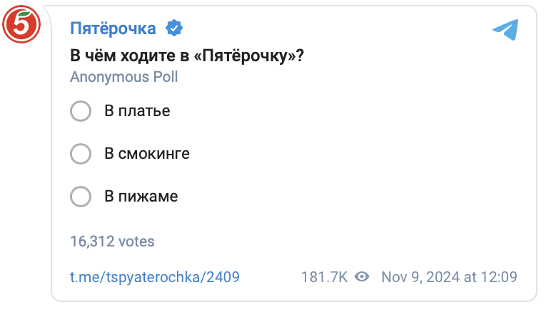 Интересно, что среди неконкурсных постов больше всего реакций собрал простой опрос: «В чем ходите в "Пятёрочку"».