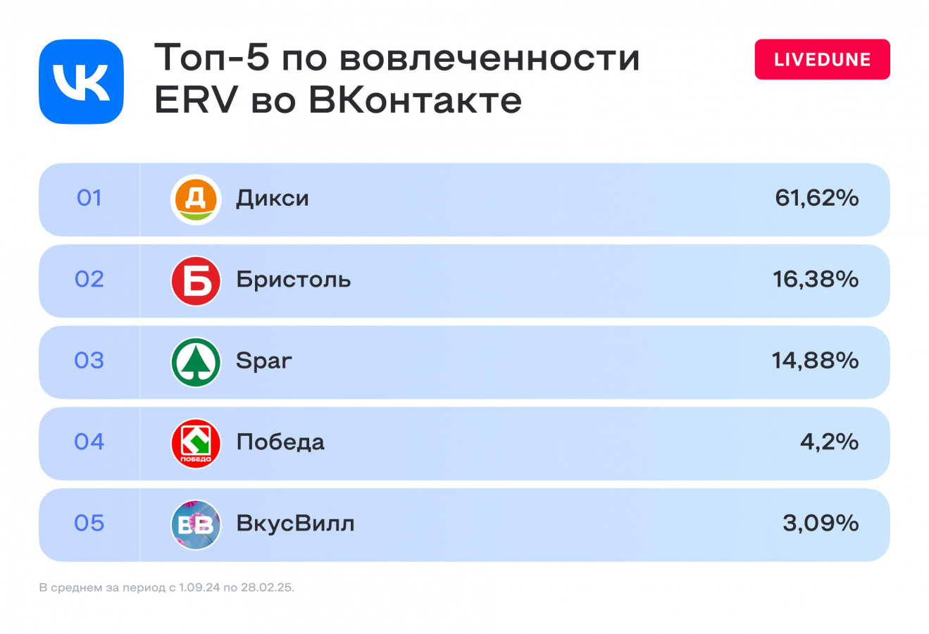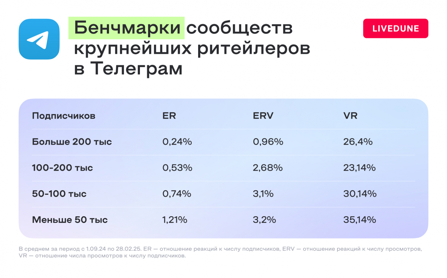 Дисклеймер: В средних показателях вовлеченности, представленных на бенчмарках, стоит учитывать влияние конкурсного контента. Цифры без учета конкурсов мы опубликуем во второй части нашего исследования.