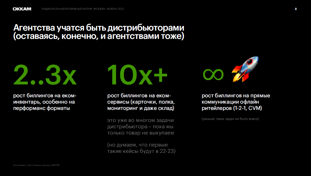 В Okkam указывают, что ритейл стал последним из доступных многим брендам медиа. При этом маркетплейсы до трёх раз увеличили рекламную выручку.