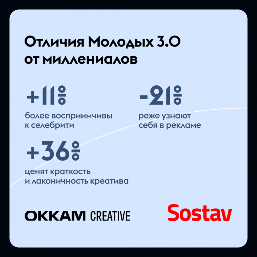 - краткость и лаконичность. Представители поколения «Молодых 3.0» позитивно реагируют на сфокусированность креатива на четких посылах;