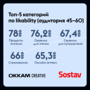Так как очевидно, что многие креативы сейчас создаются с учетом интересов более молодой аудитории, результаты были вполне ожидаемы: меньше 2/3 креативов попали выше бенчмарка эффективности likability.