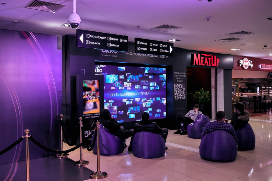 В то же время сразу переходить на новый бренд мы не могли. Объединенная киносеть была создана в результате слияния нескольких федеральных и региональных киносетей. Они заметно отличались с точки зрения пользовательского опыта, и просто сменить вывески означало бы размыть ценности, которые бренд Okko транслирует пользователям. Поэтому сначала мы приступили к формированию единой среды для всех кинотеатров. Ее визуальным воплощением стало слово «КИНО» с символом бренда Okko — тремя точками над буквой O. На первом этапе мы просто добавили «КИНО» к старым названиям наших киносетей, чтобы клиенты привыкали к будущему единому бренду. «КИНО» было интегрировано во все digital-плафтормы (сайт, мобильное приложение) и внутренние «легкие» носители — плазменные экраны, расписание, сканеры электронных билетов, терминалы.