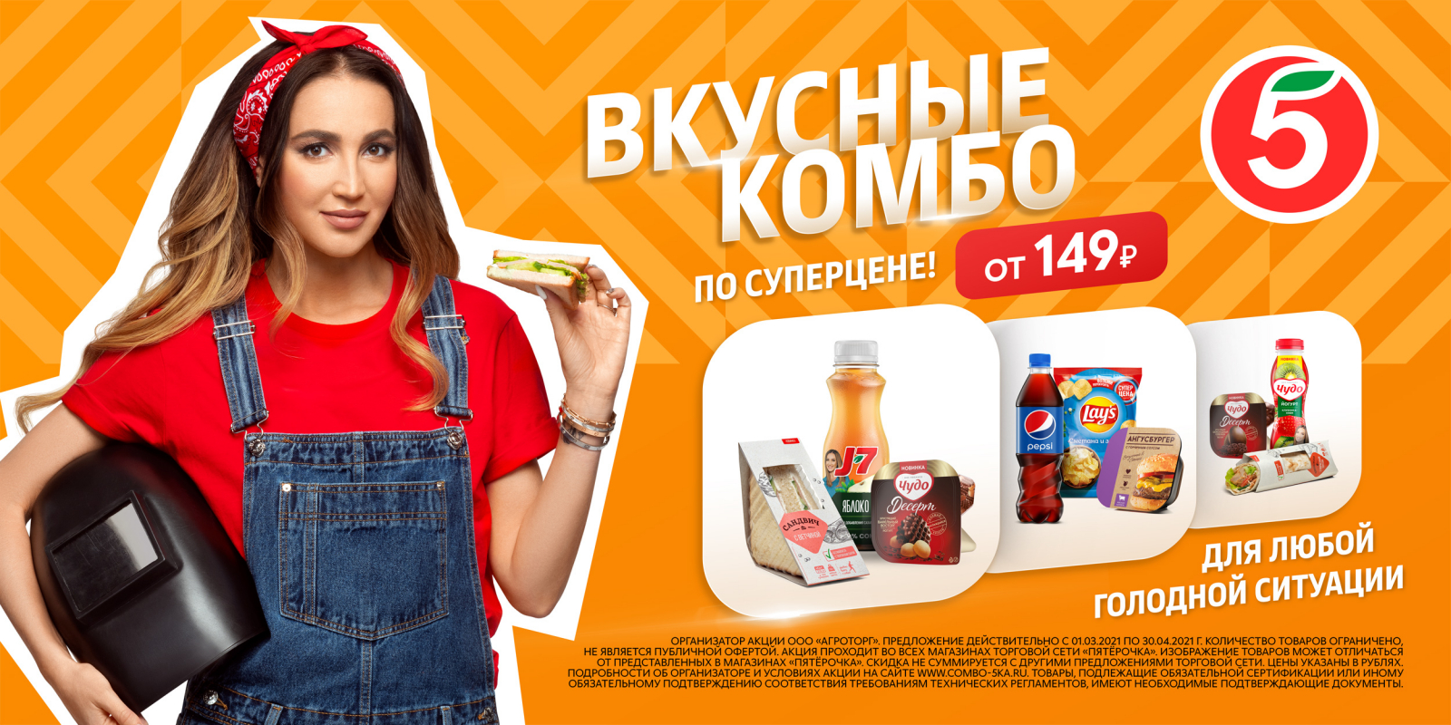 Все мы знаем, как часто бывают ситуации, когда совсем нет времени, а готовая еда для перекуса нужна «здесь и сейчас». И мы рады помочь решить эту проблему, ведь «Пятерочка» всегда рядом, здесь можно найти сотни комбинаций блюд, точь-в-точь как у Ольги Бузовой — образов.