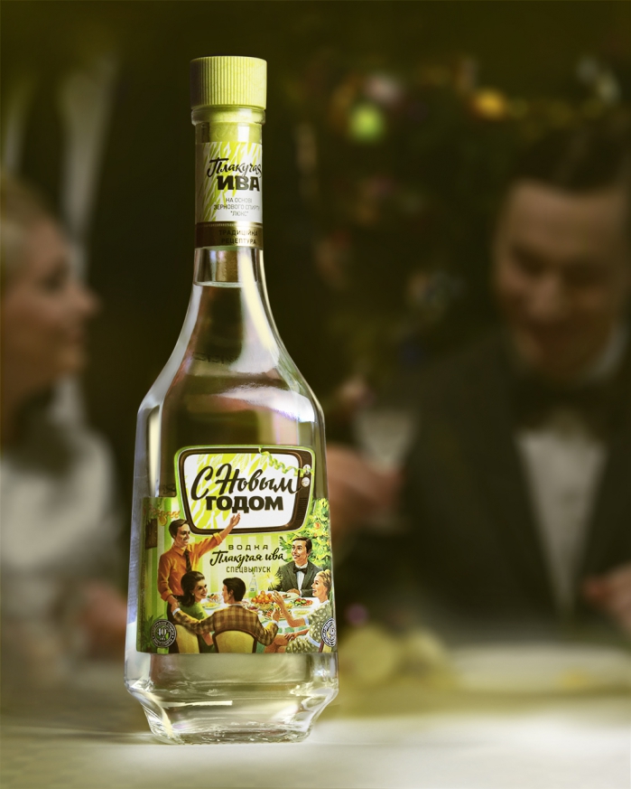Брендинговое агентство POLARIS и украинская алкогольная компания ОЛИМП выпустили лимитированную коллекцию водки «Плакучая ива» – «С Новым годом». На этикетке изображено семейное торжество в уютной домашней обстановке.