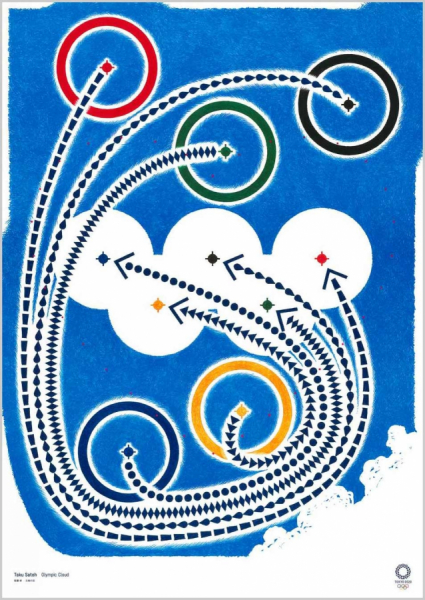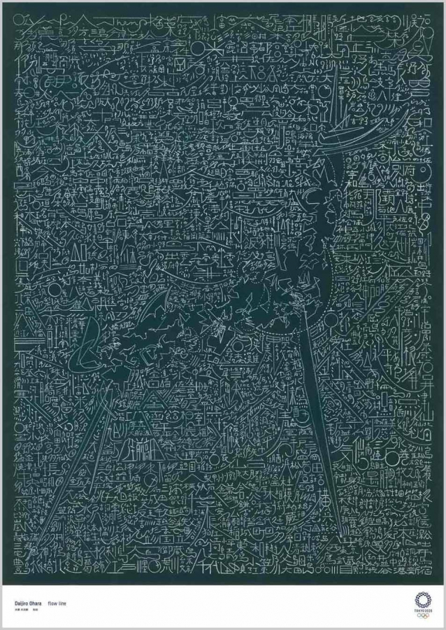Мир состоит из множества линий и связей. Временами запутываясь друг с другом, пересекаясь или наоборот — освобождаясь, эти бесчисленные линии образуют образы в пространстве и в сознании. Этот плакат представляет собой предполагаемую линию движения олимпийского огня из Греции в Токио на Играх 2020 года и отражает более 800 муниципалитетов на пути эстафеты факела.