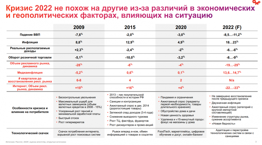 В 2009 году выросла категория финуслуг (24%) — потребители были осторожны в своём финансовом поведении. Также отмечен рост гипермаркетов и бум потребления интернета. С точки зрения рекламной активности также выросли направления массовых мероприятий (+45%), фармы (+42%), ритейла (+20%) и общепита (+13%).