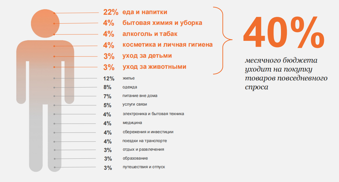 40% месячного бюджета россиян уходит на покупку товаров повседневного спроса. При этом покупатели все реже разграничивают то, как и где они совершают покупки. Для многих приобретение части товаров офлайн, а другой — онлайн стало привычной практикой. Об этом говорится в новом обзоре омниканального рынка «Нильсен» за последние 12 месяцев по март 2025 года включительно.