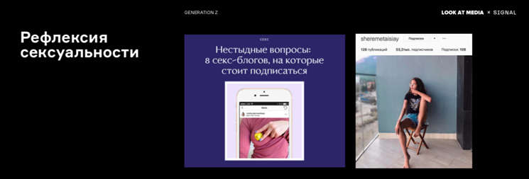 Поколение Z не мистифицирует секс. Благодаря распространению сексуального образования и в не меньшей степени доступности контента о сексе в интернете, в сфере отношений между полами не осталось никаких табу. То, что так доступно, автоматические теряет привлекательность. По статистике Института образования НИУ ВШЭ, нынешние подростки проявляют меньше интереса к раннему сексу по сравнению с предыдущими исследованиями.