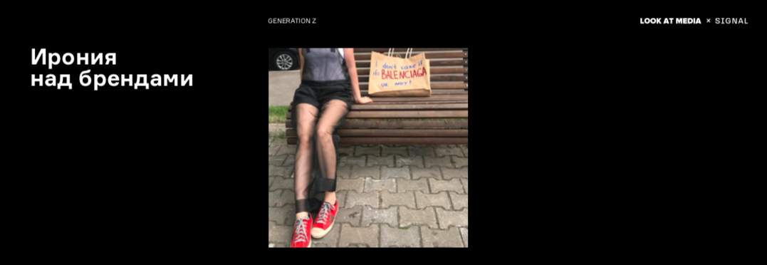 Сегодня подростки иронизируют над классическими брендами роскоши и премиума, которые относятся к себе очень серьезно, их раздражает любой пафос. Но они не будут смеяться над брендами, которые уважают: в десятке любимых, например — Nike и Levi's. Согласно исследованию Google, особую любовь «зеты» питают к обуви (Jordan, Converse и Vans).