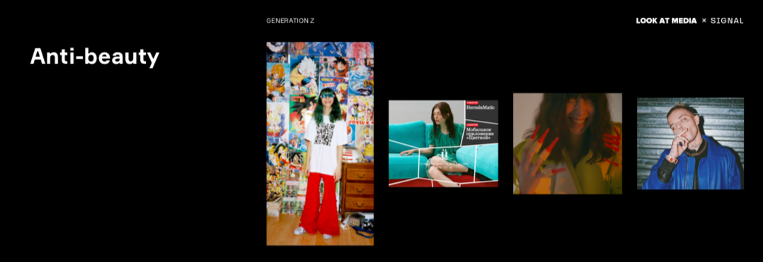 Среди владельцев аккаунтов Instagram моложе 20 лет много тех, кто демонстрирует свою жизнь без прикрас: на фоне панельных домов и разбитых дворов, в спонтанных позах и без дежурных улыбок. Склонность детей цифровой эпохи к реалистичным, нетрадиционным идеалам красоты проявляется и в том, что 75% из них называют YouTube своим любимым сайтом (исследование Dana communications). Звездами YouTube становятся «обычные» люди, которых подписчики воспринимают как экспертов в различных областях, включая красоту и стиль.