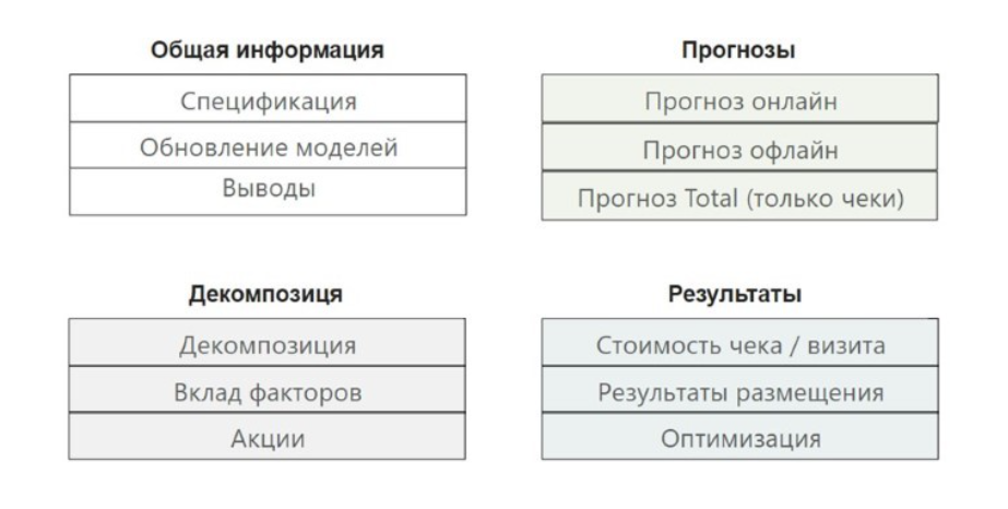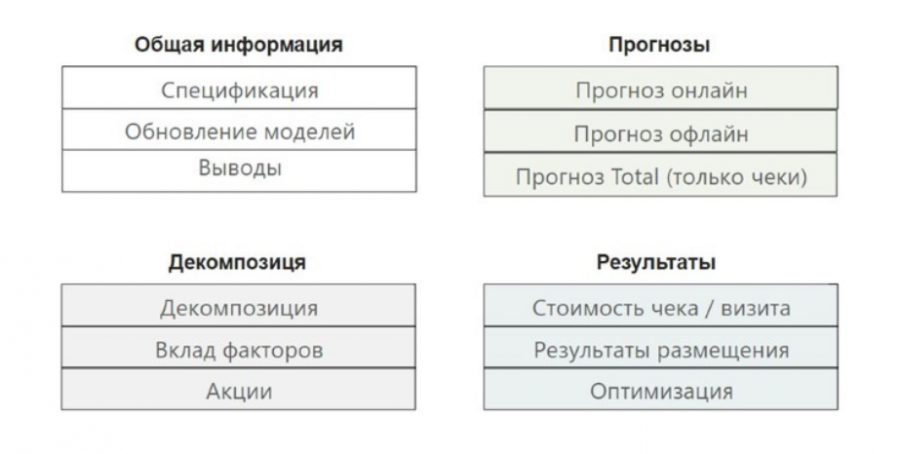 Эконометрическая модель может быть построена как на агрегированных данных на всю Россию, так и на детальных данных на уровне точек продаж. Второй вариант особенно полезен для категории ритейла, где доступны все детальные продажи на уровне магазинов. При этом результаты моделирования могут быть интересны как на всю Россию, так и в детализации по регионам. С помощью BI-инструментов результаты моделирования можно упаковать в компактный вид: нескольких страниц, на которых будет доступна вся необходимая информация по регионам и по периодам.