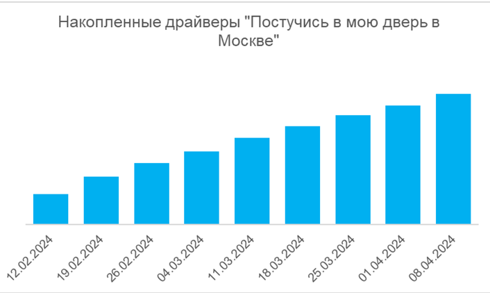 Возвращаясь к аналитике по внутренним данным: информацию от Okko публиковать мы не можем, но предположим, что динамика у сервиса не хуже Premier. На Premier динамика сериала «Постучись в мою дверь в Москве» по смотрящим пользователям стабильна, то есть пришедшие на премьеру остались на сервисе и следят за развитием сюжета. Сериал продолжает привлекать новую аудиторию — драйверы после первых двух недель работы (самых высоких по притоку) набирают около 40% от числа привлеченных пользователей за первую неделю уже восемь недель подряд. Доля пользователей, которых смог привлечь на Premier сериал «Постучись в мою дверь в Москве», в первом квартале 2024 года составила почти 10% от всего притока. Интересный факт — премьера российской адаптации помогла и «перезаварить» турецкий оригинал: его просмотры в первом квартале также выросли.