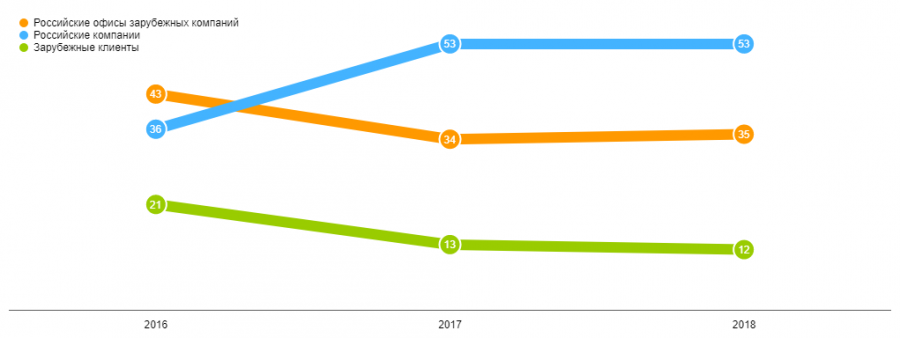 При этом, материалы Отчета РИН, основанные на анкетировании участников рынка, содержат массу интересных деталей. Так, в течение последних двух лет заметно увеличилась доля заказов, полученных от российских клиентов. Напомним, что это происходит на фоне роста рынка.