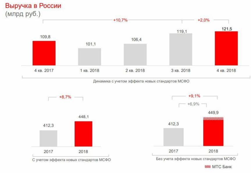 В 2018 году бизнес МТС в России продемонстрировал положительную динамику выручки во всех сегментах кроме фиксированного бизнеса. Выручка выросла на 8,4% в годовом выражении и достигла 480,3 миллиарда рублей, сообщается в финансовом отчёте компании.