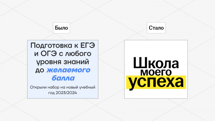 Наша команда сформулировала концепцию для визуального обновления: «Собери путь к успеху и сконструируй свою систему знаний вместе с „Умскул“». Также она создала новое позиционирование: «Школа моего успеха».