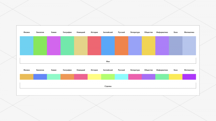 Каждому школьному предмету мы определили не только свой набор цветов, но и соответствующий графический символ.