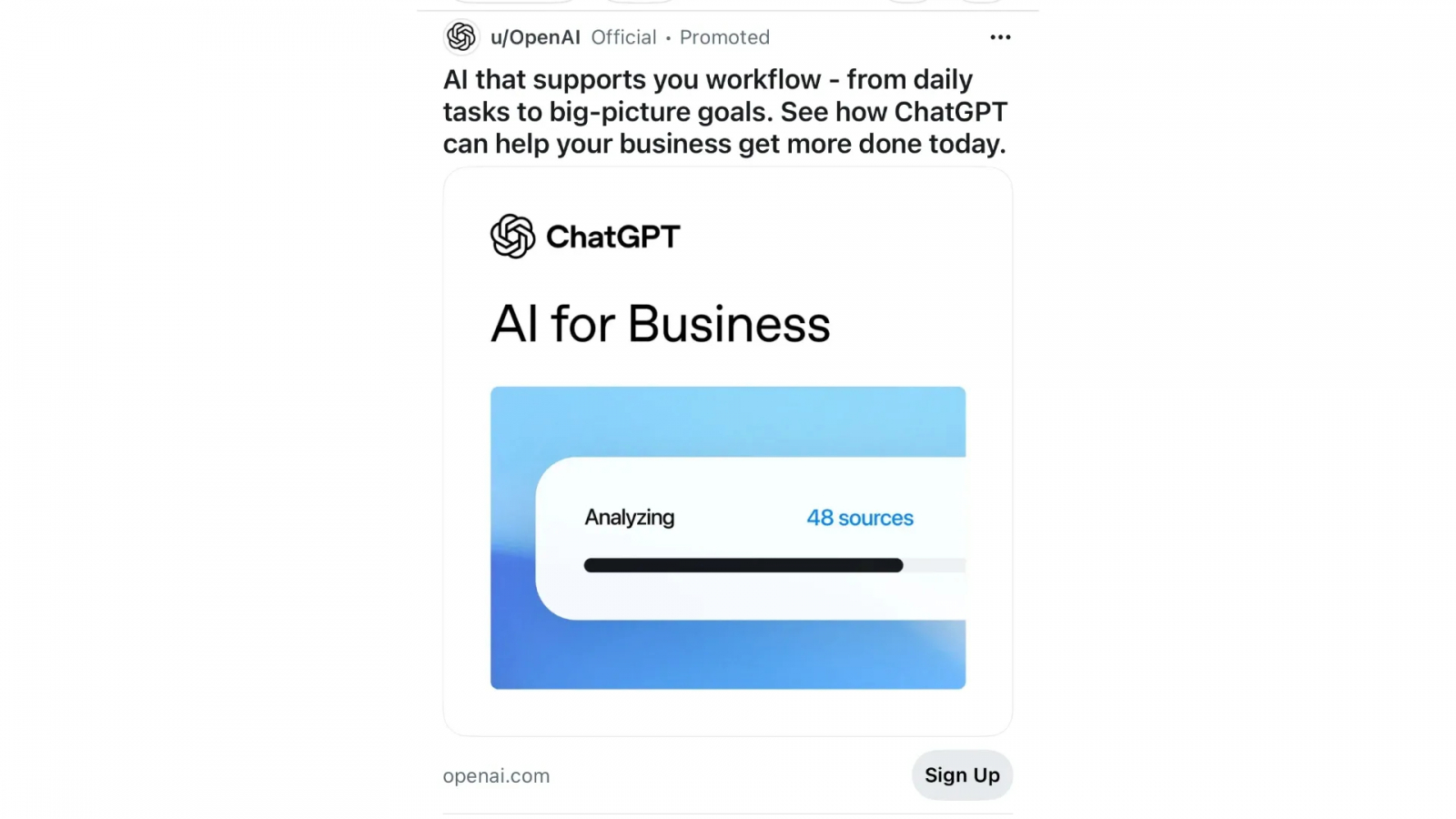 OpenAI приступила к размещению рекламных материалов на платформе Reddit, продвигая свой пакет бизнес-решений, сообщает PPCland. Кампании ориентированы на профессионалов в области продаж, маркетинга, финансов, здравоохранения, финансовых услуг и стартапов. Рекламные объявления подчеркивают возможности ChatGPT для корпоративных клиентов в автоматизации задач, масштабировании операций и обеспечении результатов при соблюдении стандартов безопасности данных.