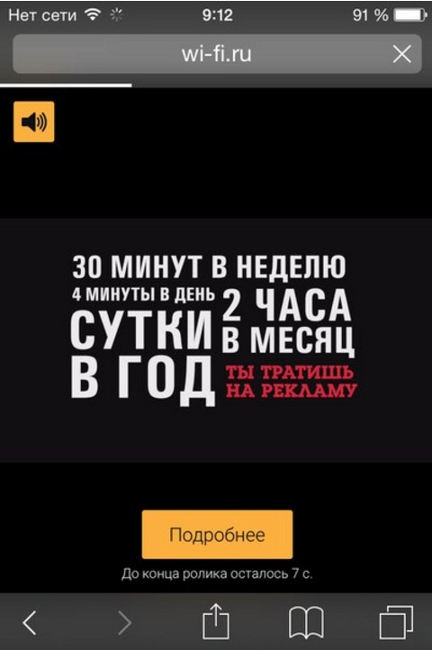 Сама по себе платная подписка в данной ситуации не столь удивляет, однако интересна достаточно агрессивная политика сервиса по продвижению своих услуг без рекламы. Соответствующее предложение привязано к каждому баннеру, а кроме того подключение сопровождается роликом, в котором подсчитывается, сколько времени пользователель тратит на рекламу за свою жизнь.