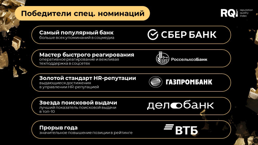 RQ Index оценивает репутационные достижения банков России по семи критериям.