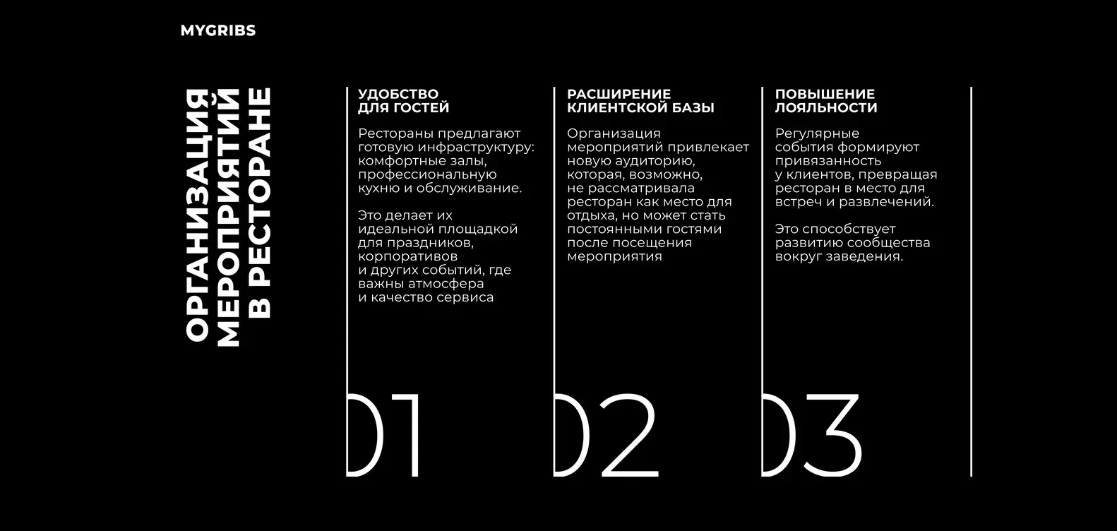 - Расширение клиентской базы. Организация мероприятий привлекает новую аудиторию, которая, возможно, не рассматривала ресторан как место для отдыха, но может стать постоянными гостями после посещения мероприятия.