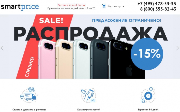 Пока на сайте Smartprice предлагаются только смартфоны Apple и Samsung. Продается три категории аппаратов: «как новый» (без косметических дефектов), «отличный» (с малозаметными повреждениями) и «хороший» (заметные царапины и сколы).