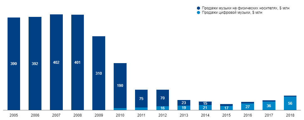 Аудитория в России исторически привыкла платить за музыку. В 2007 году с результатом $401,7 млн музыкальный рынок нашей страны занял девятое место в мире по размеру выручки. Все легальные продажи приходились в тот момент на физические носители (CD, виниловые пластинки и кассеты).
