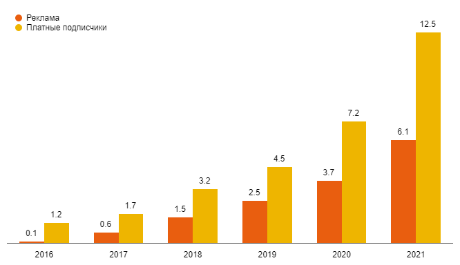 Рынок музыкального стриминга в России, млрд. руб., 2016 — 2021 гг (прогноз)