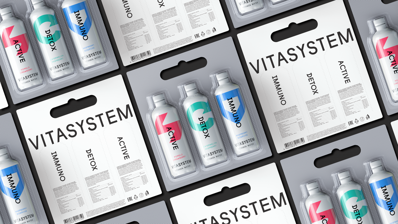 Идея Vitasystem — помогать человеку создавать жизненный баланс, предлагая лёгкие ненавязчивые вкусы с полезными элементами, а также быть частью современного образа жизни наряду с умными устройствами и функциональным потреблением. Поэтому дизайн бутылки воды воплотил в себе некий образ современного девайса, который позволяет «зарядиться витаминами».