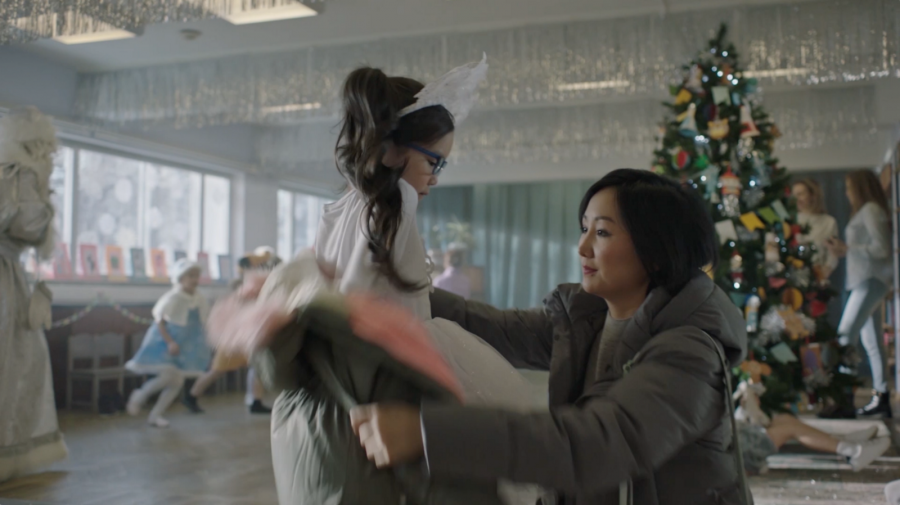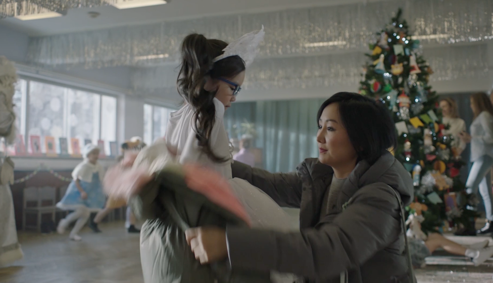 «Сделать снежинку самой яркой сможете только вы. А мы поможем не потерять блеск по дороге». Так начало фразы «Сделать снежинку…» совпадало с моментом, когда на экране девочка в костюме, а «только вы» — когда в кадре появляется мама.