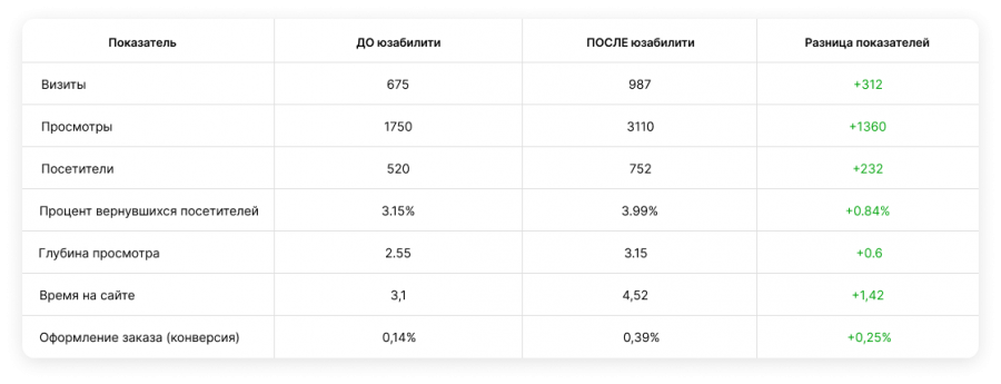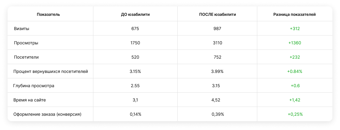 Улучшения в юзабилити напрямую повлияли на рост продаж и достижение ключевых показателей эффективности.