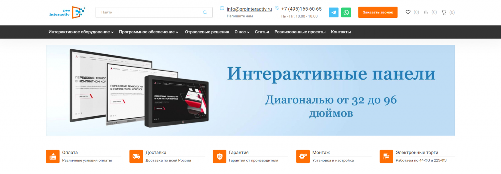 Разберем основные этапы на примере сайта Prointeractiv᎐ru — официального поставщика интерактивного оборудования для образования, бизнеса, развлечений и других сфер. Проведем вместе анализ данных из метрик, изучим конкурентную среду, выявим проблемы на сайте и определим потенциальные точки роста, чтобы начать действовать.