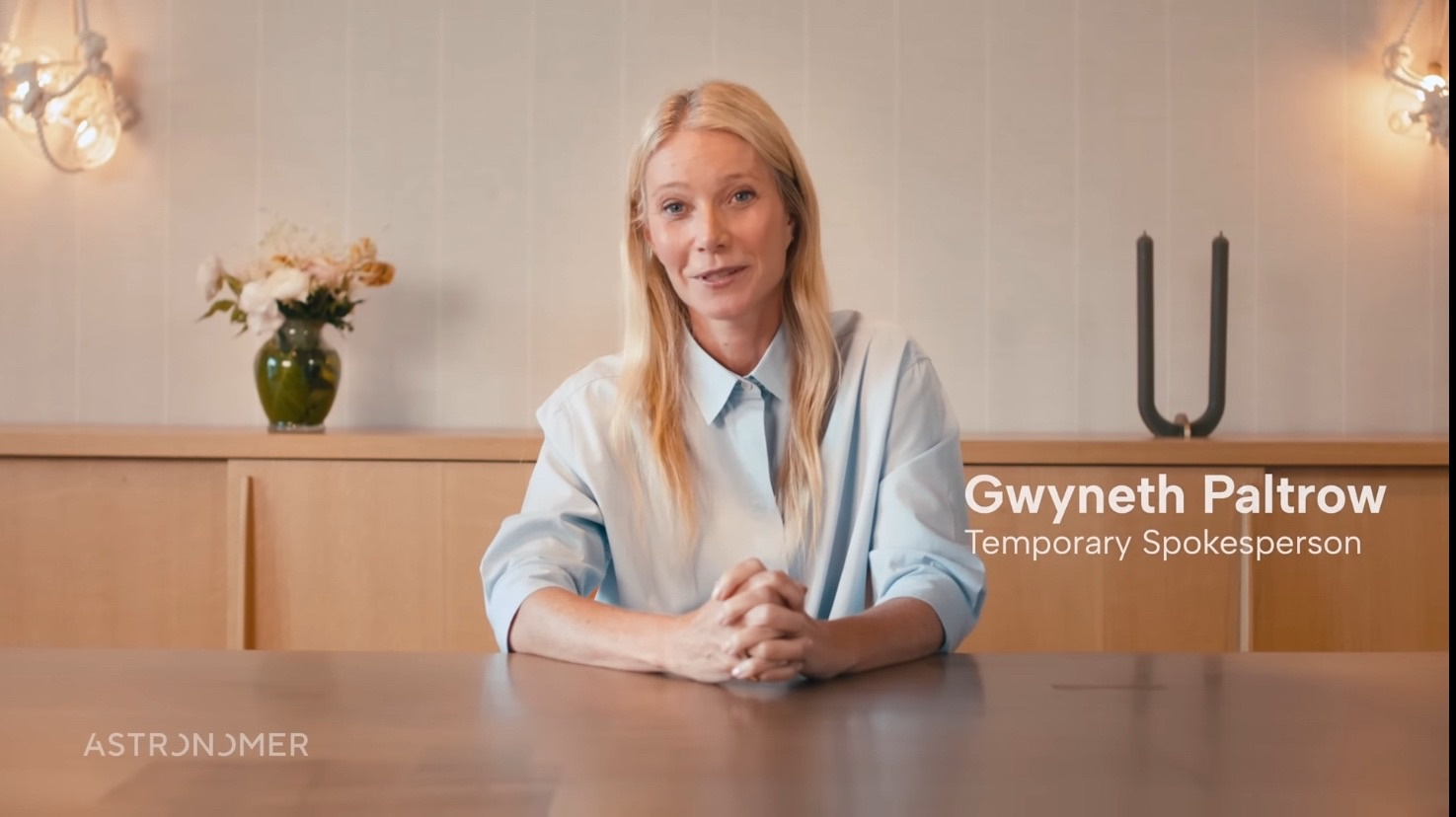 После официальной реакции Astronomer предприняла неожиданный и смелый ход — через несколько недель вышел видеоролик с Гвинет Пэлтроу в роли «временного представителя» компании. Ролик был создан студией Maximum Effort Райана Рейнольдса, известной умением создавать вирусный контент из любых медиа поводов.