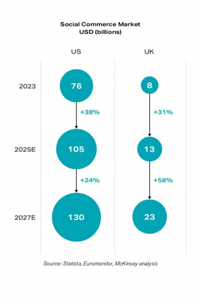 По мере развития потребительского поведения вместе с ускорением цифрового внедрения, несколько ключевых медиа-трендов уверенно закрепляются. Формируется новый облик розничной торговли — теперь балом правит социальная коммерция. Глобальные продажи в сфере социальной коммерции могут превысить триллион долларов к 2028 году.