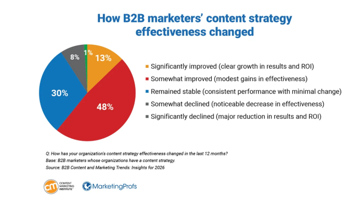 Лучшие маркетинговые команды, планирующие оставаться успешными в 2026 году, сначала строят стратегию, а затем используют ИИ для повышения креативности и эффективности. При этом им придется работать в условиях дефицита инвестиций. Такие выводы содержатся в опросе более тысячи B2B-маркетологов, проведенного MarketingProfs при поддержке Storyblok.