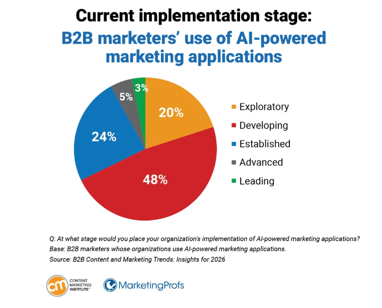 95% B2B-маркетологов утверждают, что их компании используют приложения на базе ИИ. Вот как обстоят дела с их внедрением: