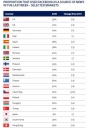 Интересно также, каким новостным брендам доверяют люди. В США, например, на первом месте находятся региональные телевещатели (6,5), за ними следуют Wall Street Journal (6,06), ABC News (5,84), CBS News (5,84), NPR News (5,82), Washington Post (5,78).