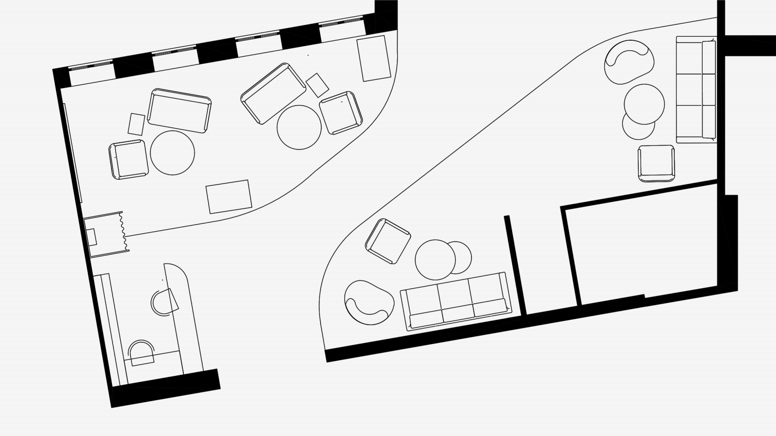 Интерьер выполнен в стиле ар-деко, что подчеркивает театральность и элегантность бизнес-центра. Это оформление создает атмосферу лобби отеля, способствующую спокойствию и уединению гостей.