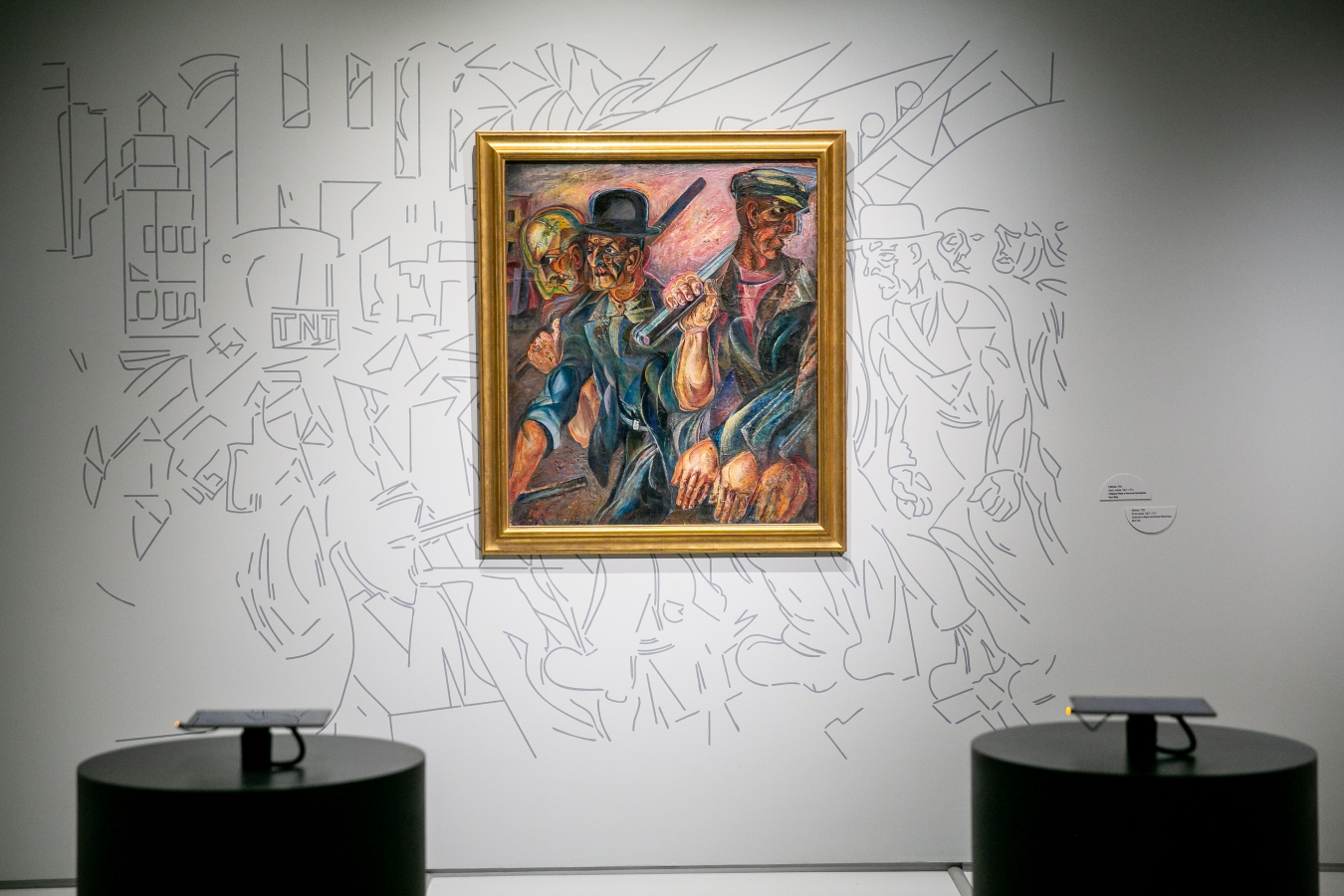 Ее центральным элементом стал проект виртуальной реконструкции картины «Рабочие» (1924). От оригинального полотна до наших дней дошел лишь фрагмент. Единственный раз полотно демонстрировалось в 1926 году в Филадельфии, но спустя десятилетия из-за неправильного хранения было утрачено. Организаторы московской выставки решили не просто показать сохранившийся холст, но и с помощью технологии дополненной реальности дать посетителям уникальный шанс — увидеть полотно таким, каким ее видела американская публика более 90 лет назад: два на три метра.