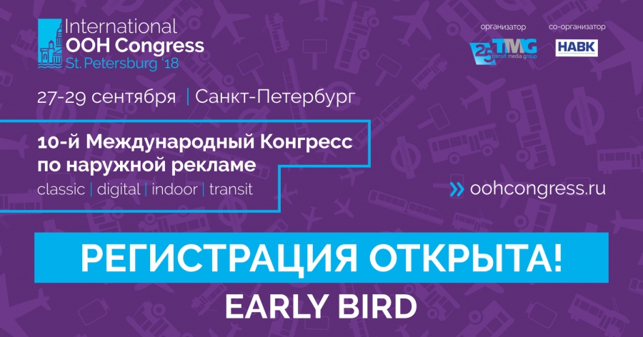 С 1 июня открыта Early Bird регистрация на одно из самых ожидаемых событий рекламной индустрии, 10-й Международный Конгресс по наружной рекламе, который пройдет 27−29 сентября в Санкт-Петербурге.